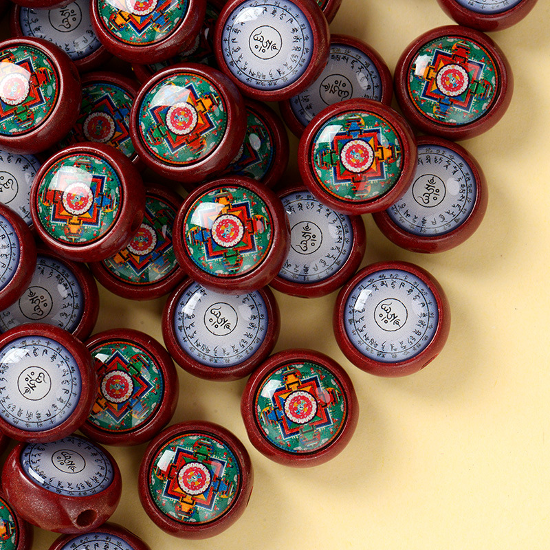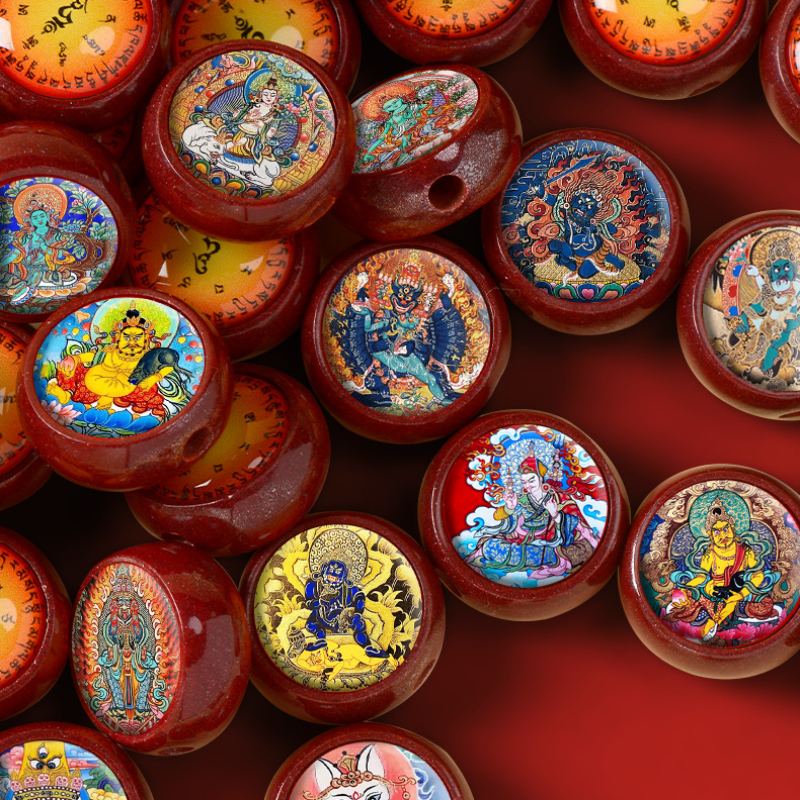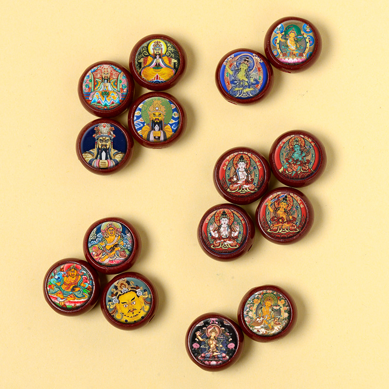 Cinnabar Tibetan Thangka Charm – Mini Round Pendant for DIY Jewelry