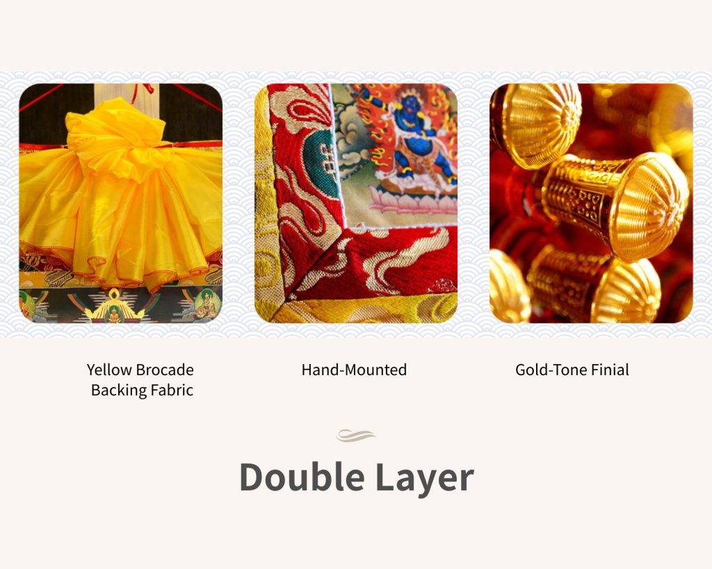 Crafted with silk and brocade textiles, it is fully double-layer, hand-mounted to ensure a smooth, even, and wrinkle-free finish.