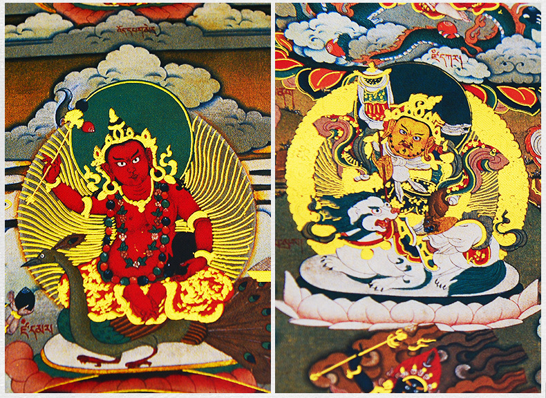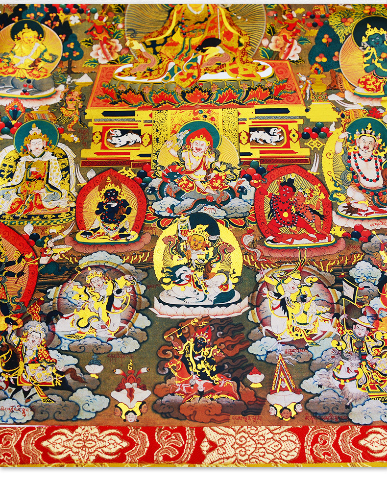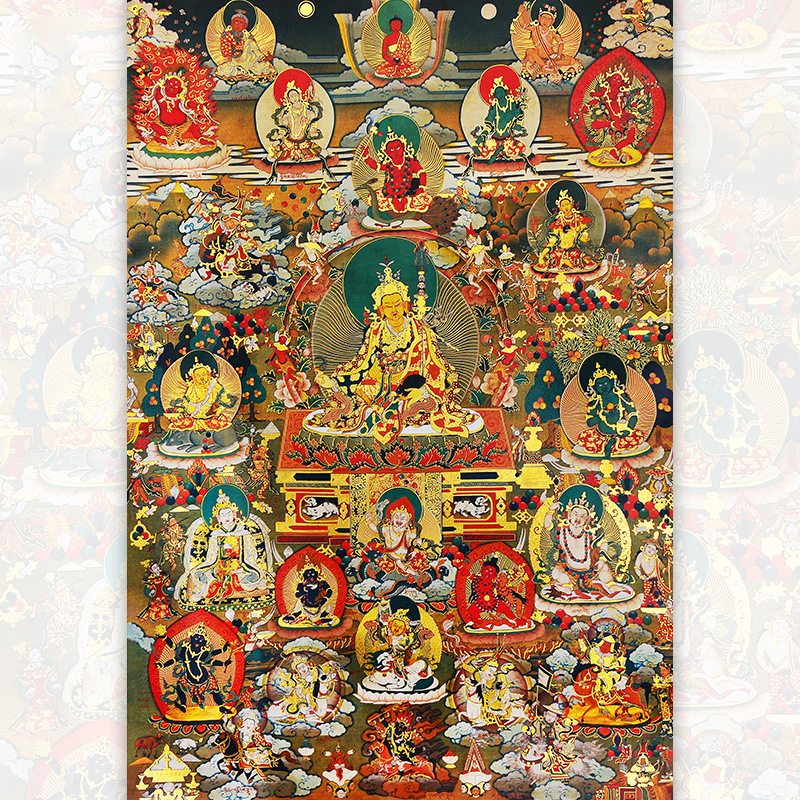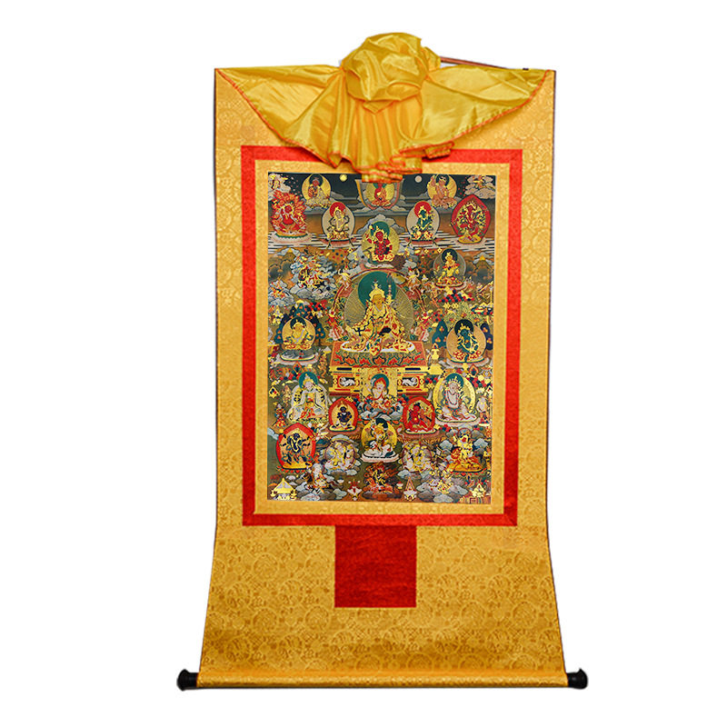 Gilded Guru Rinpoche (Padmasambhava) Thangka | Tibetan Wealth Deity Buddhist Wall Art for Tea Room & Meditation