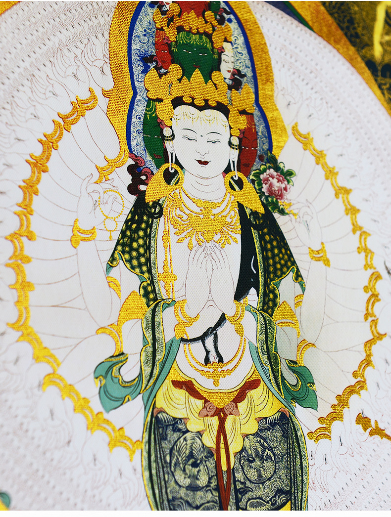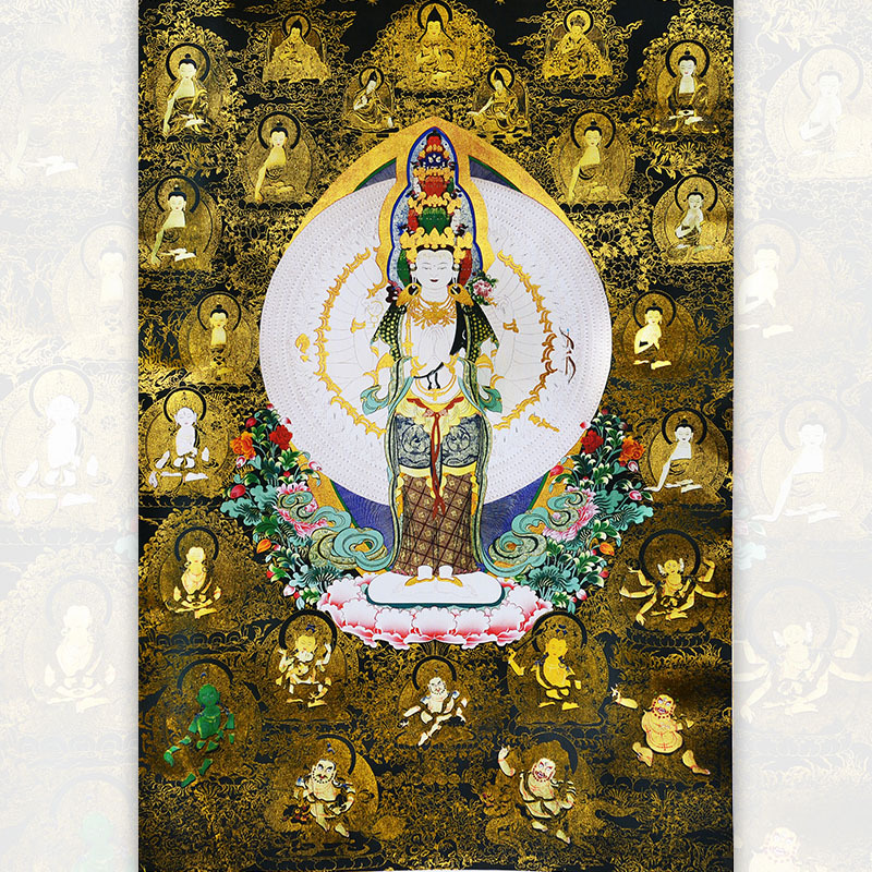 Thousand-Armed Avalokiteshvara embodies limitless compassion.Thousand-Armed Avalokiteshvara Thangka