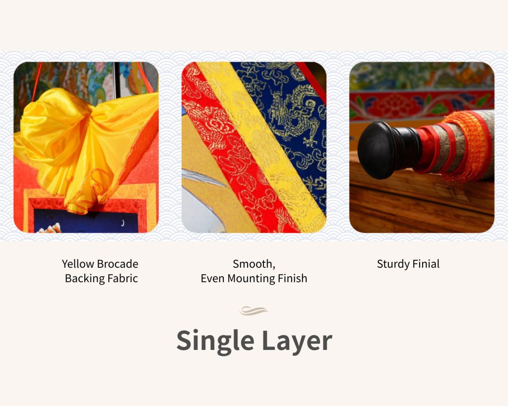 Crafted with silk and brocade textiles, it is fully double-layer, hand-mounted to ensure a smooth, even, and wrinkle-free finish.