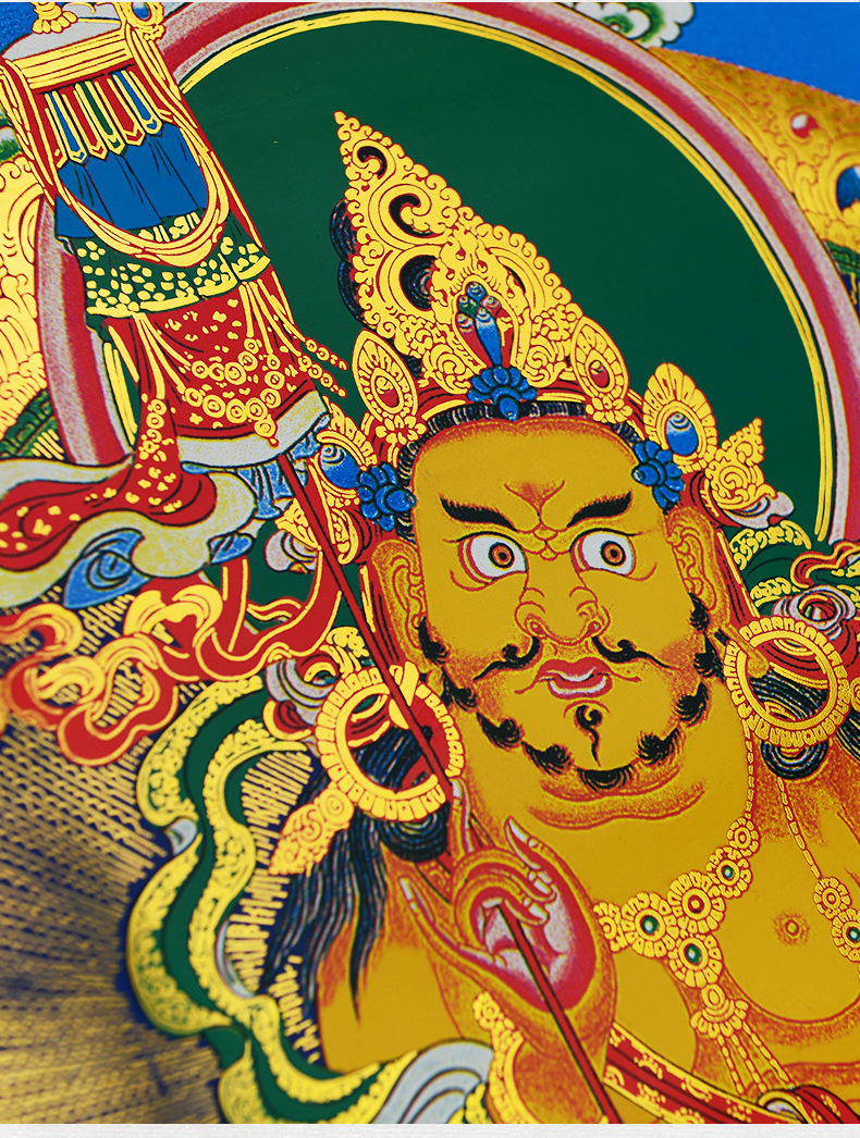 Gilded Vaishravana Thangka | Tibetan Wealth King Buddhist Wall Art for Entrance & Prosperity Decor