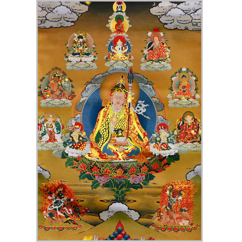 Guru Rinpoche Eight Manifestations Thangka | Tibetan Padmasambhava Buddhist Wall Art for Altar & Meditation