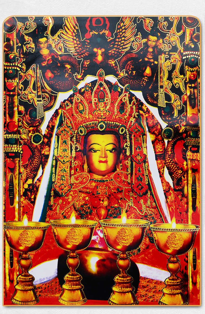 Shakyamuni Buddha represents enlightenment, wisdom, and the Middle Path.